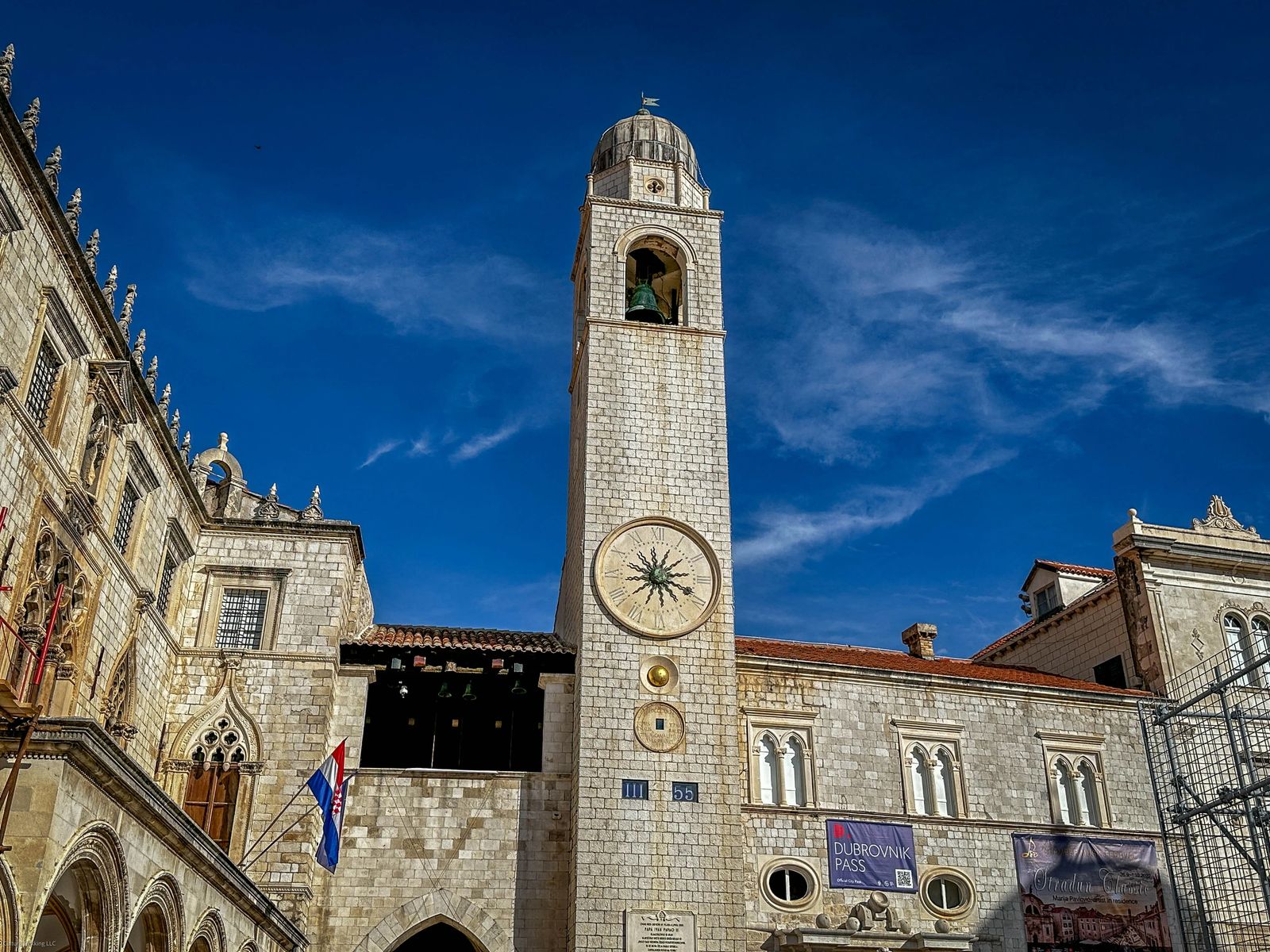 The Clocktower overlooks Orlando’s column (a mythical knight of Dubrovnik) 101ft (31m). He was built in 1444 and is said to have protected the city of Dubrovnik. If you head into Sponza Palace (across from the column) there is an entire exhibition on him.