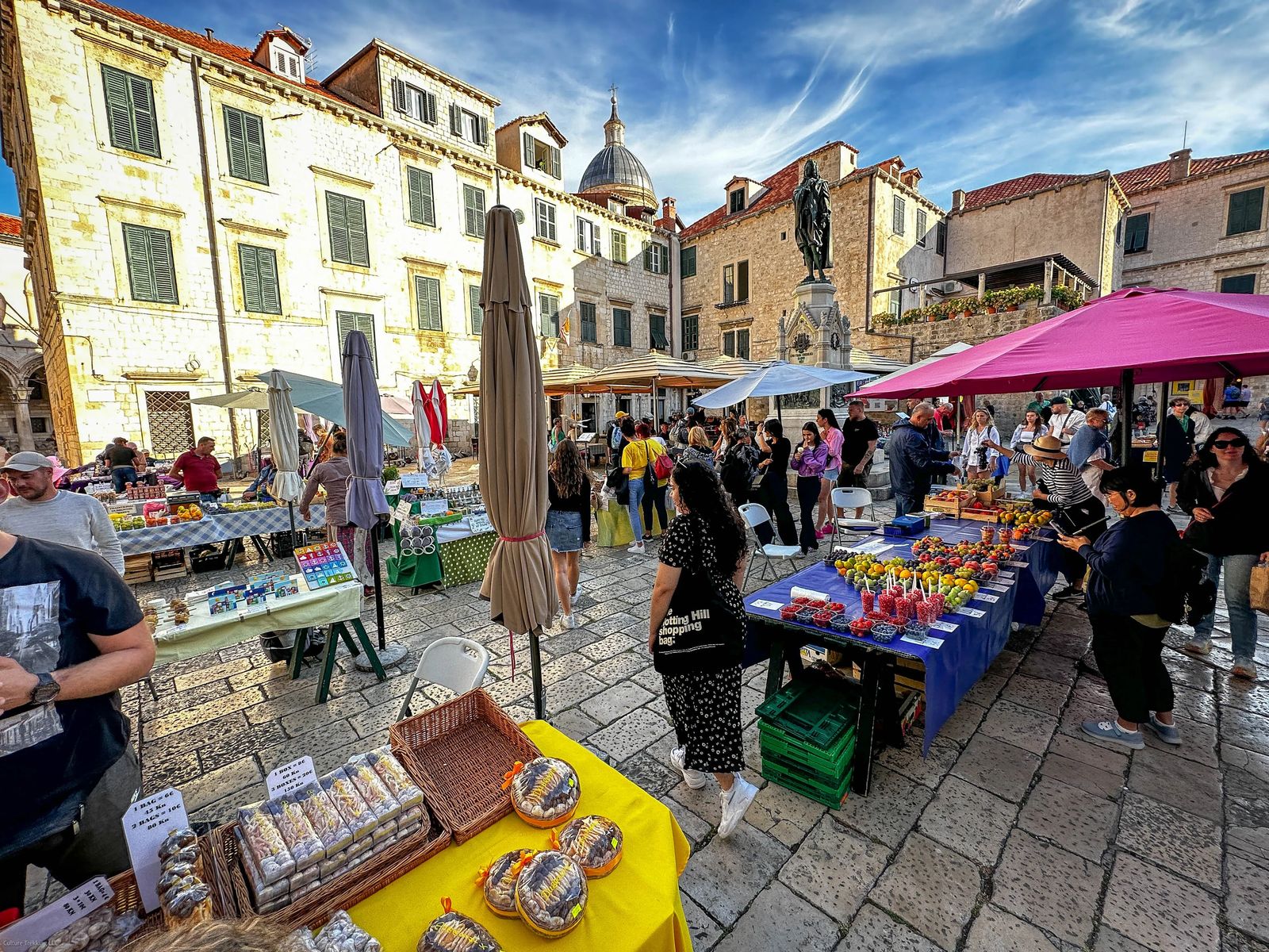 Located right across from Sponza Palace down an alleyway and near Ivan's statue you can find the Farmer's Market. If the weather is good you will find lavender (Dubrovnik is known for their Lavender), Arancia (candied orange peels), wooden frogs (great stocking stuffer), and fresh fruit that I personally stocked up on to save some money on breakfast.