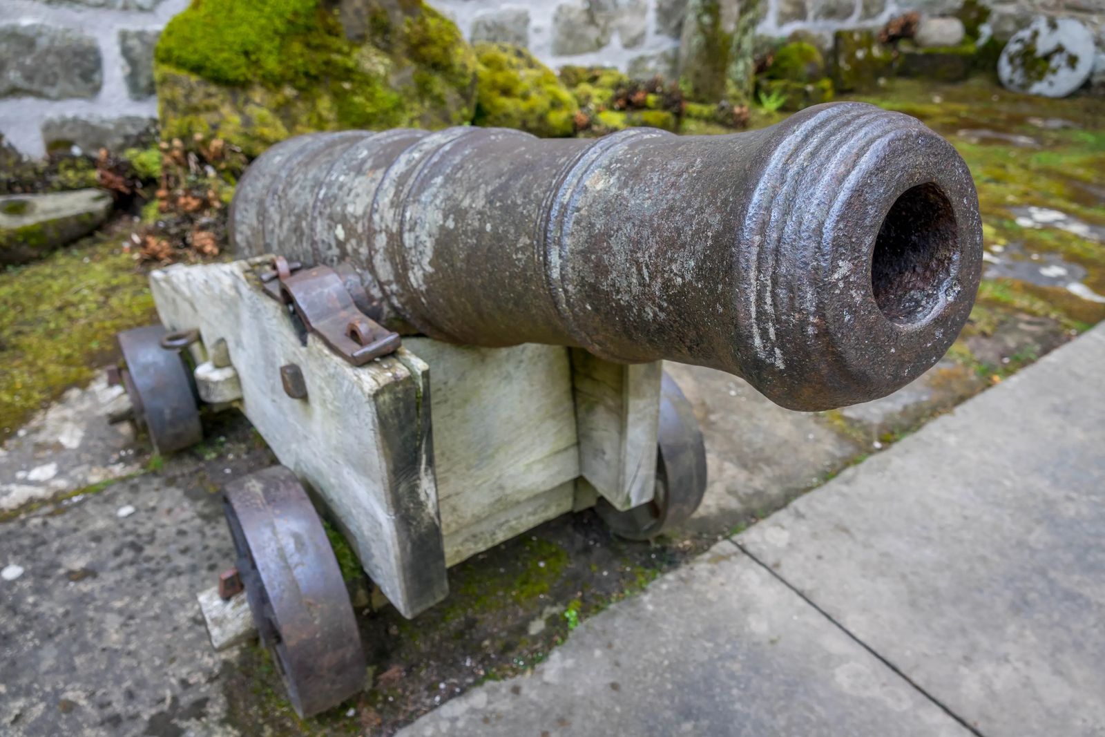 After you finish staring into the windows, and everyone who passes you thinks your a lunatic. You will come to the basement vault with the thorn tree (discussed above). Just outside the vault, you see an original cannon and the original gate of the keep.