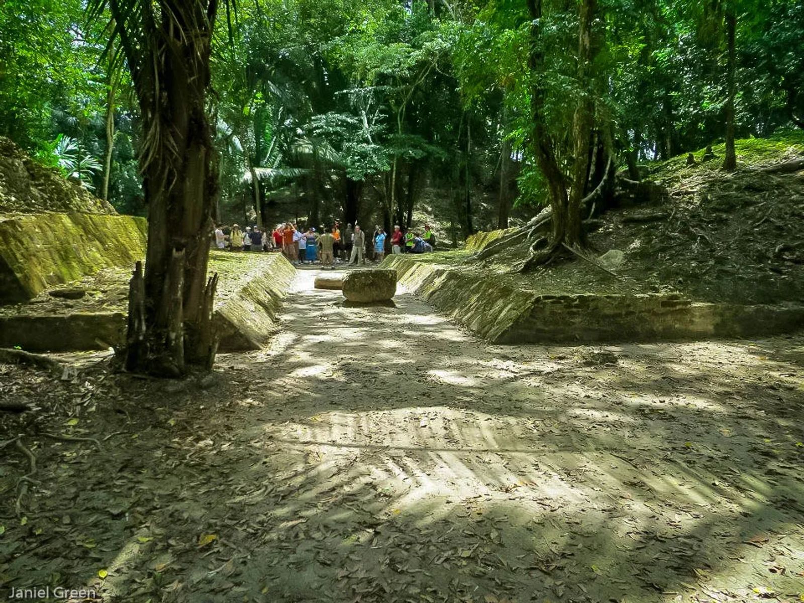 It might be wrong to call it entertainment, the Mayans used it as a way to hold rituals and even ritualistic sacrifices. There are several basketball courts in Lamanai, shaped in an I shape with two slopes on either side. There was a long narrow playing field and two end zones. There was a 20 foot (6m) ring which competing teams would try to score through.