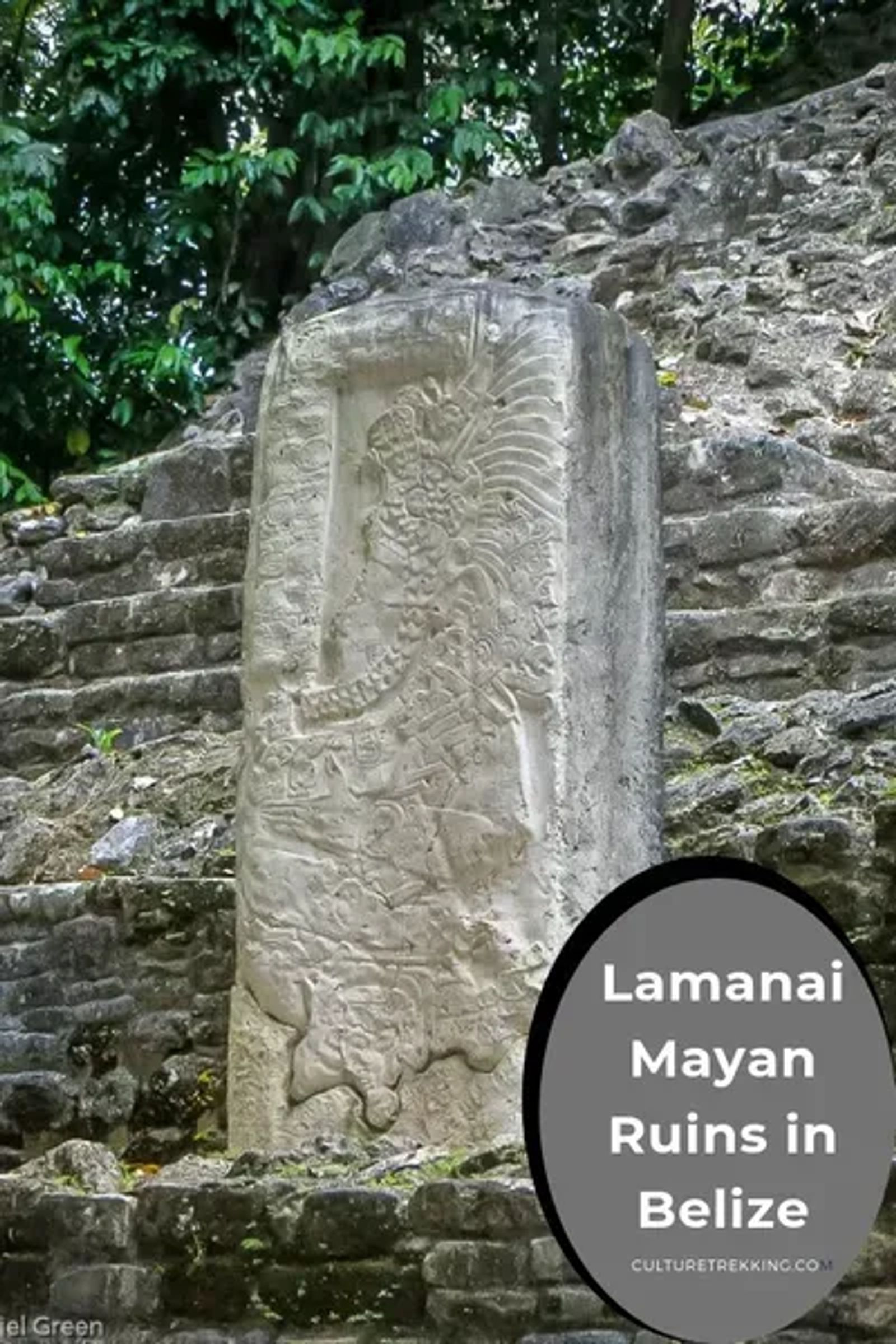 While it is hard to see this in the photo, this is an important piece in the Lamanai Mayan Ruins in Belize as it provides further evidence of Mayan culture, their beliefs and images associated with certain Gods they worshiped in this region.