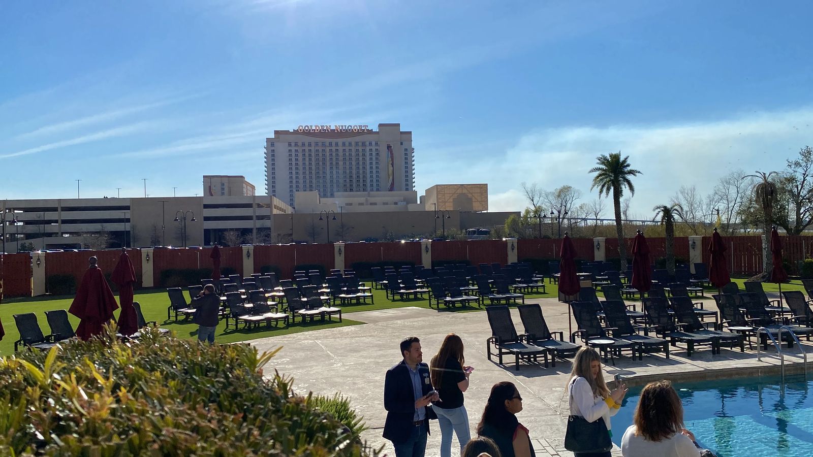 The pool at Golden Nugget has 250 chairs, 39 cabanas, 30 daybeds, 7 firepits, a Giant flower looking hot tub, and the the pool is heated year round so you can enjoy it ANY TIME!