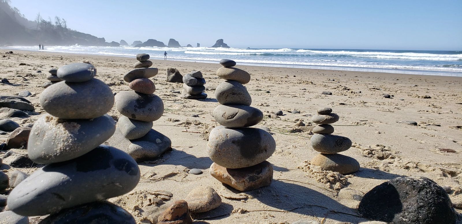 The next beach we went to, and probably my favorite beach along the coast, was Face Rock State Scenic Viewpoint. There were sea tunnels to explore (at low tide), tide pools with sea critters to get up close with, and with more unique and interesting rock formations, it made the perfect backdrop for a gorgeous sunset! But what really cinched it for me was that I had one of my favorite and most memorable beach experiences here: Circles in the Sand.