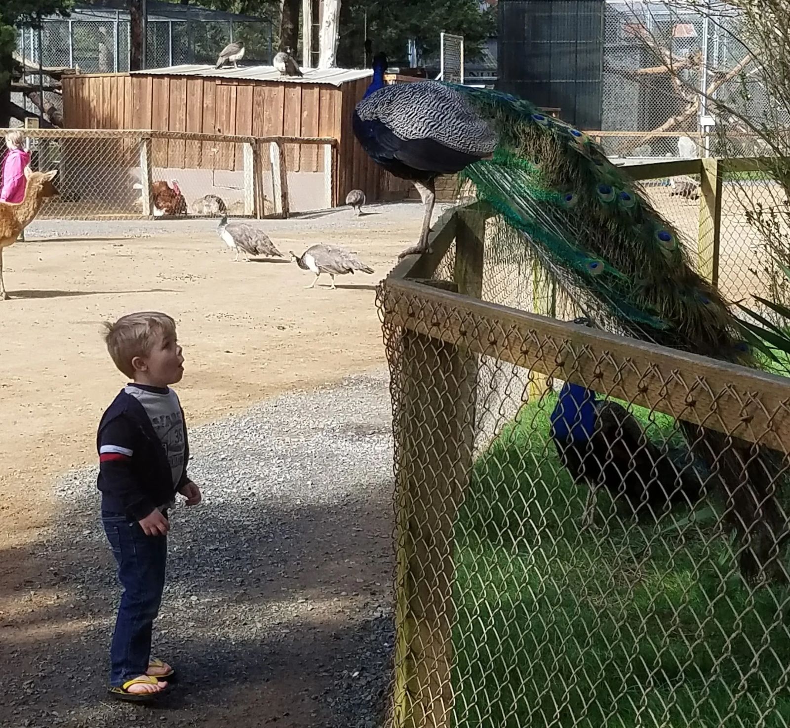I had never been so close to a beautiful peacock or had such a following of deer, goats, etc interested in what I had. Their staff also brought out other animals to see up close, like a fox, skunk, and minks… I had a possum climb up and become my bestie! My nieces and nephew even got to experience a bobcat up close!