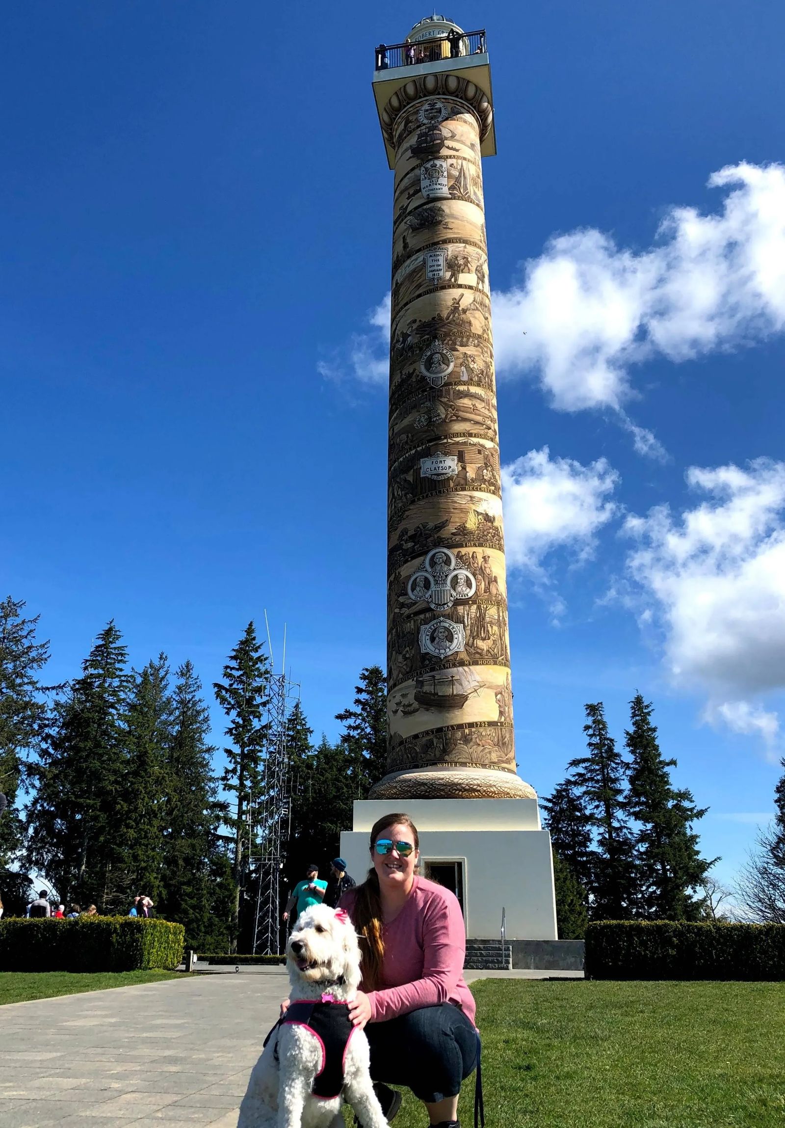 Now, you can't take your dog to the top of the column, because there's barely enough space for the humans to squeeze by each other inside the column, much less a wiggly dog. But you can walk around the top of the hill, have lunch at one of the picnic tables, and enjoy the view from the top of the hill with your fur baby.