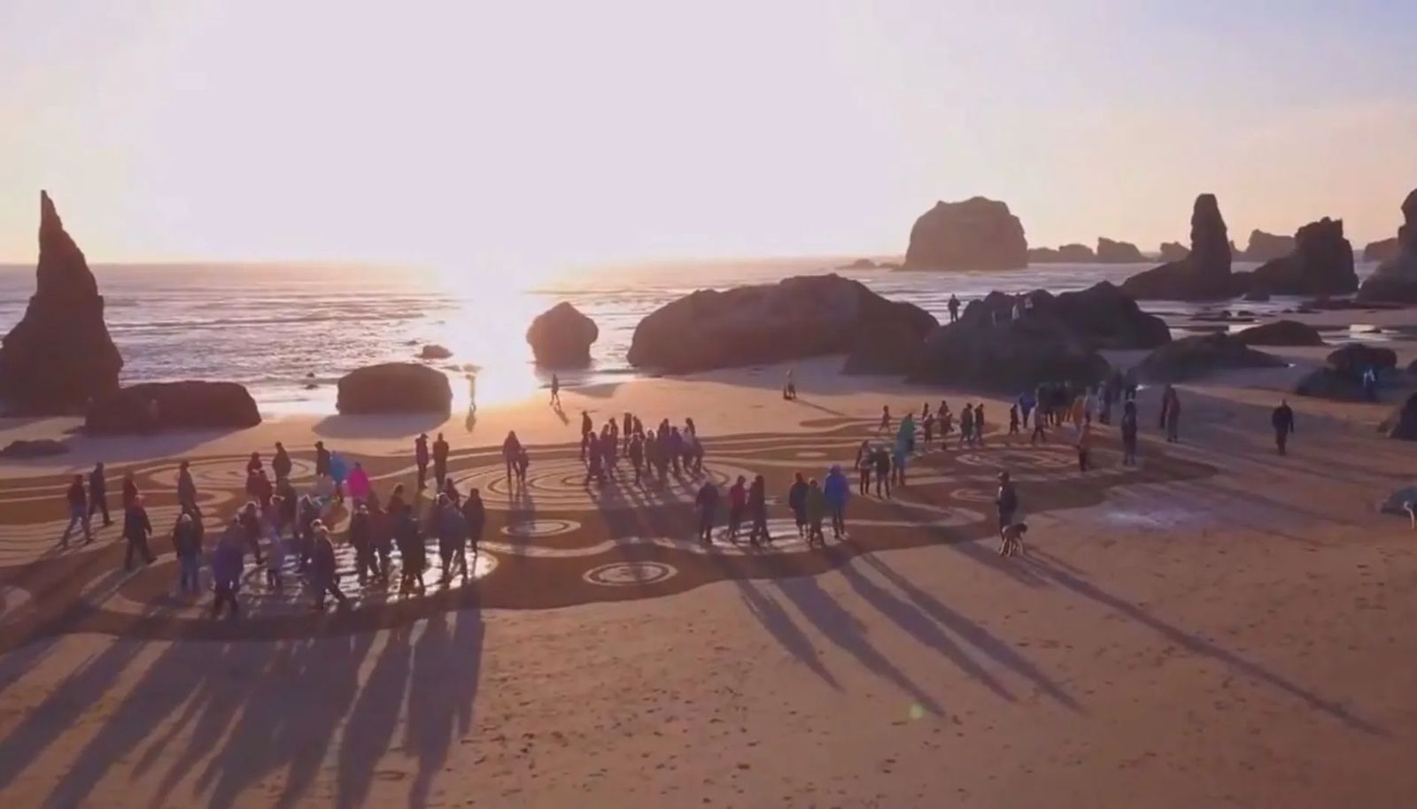 When it’s finished, you can experience it yourself by walking through the path created by these artists. But they (and you) have to plan it out carefully, as they do this at low tide so they have enough space to create these massive pieces of landscape art, and you only have a short time to experience it before the tide comes back in and washes it away.