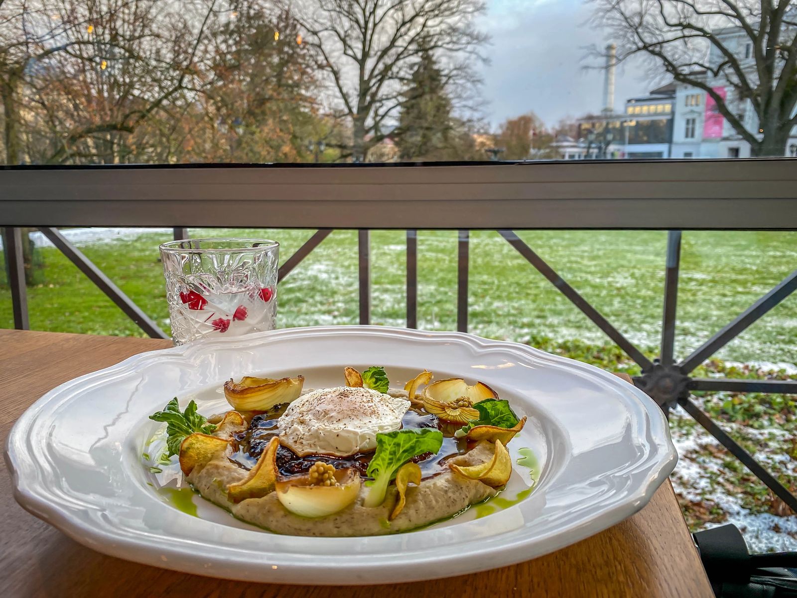 Kolonade is located right by the iconic Laima clock of Riga and the Freedom Monument, with fully glass wall looking out over the nearby park. We visited in winter, and found plenty of warm drinks to help ward off the cold, as well as wool blankets on the backs of the chairs to use.