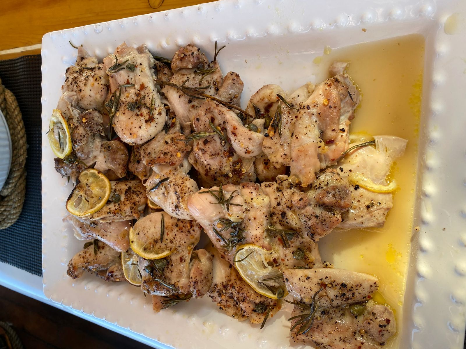- Dinner : Lemon caper chicken, rice with Thyme and chicken stock, Garlic Asparagus