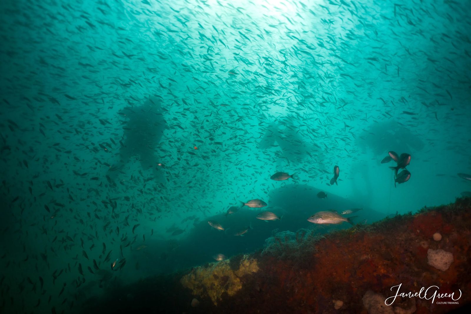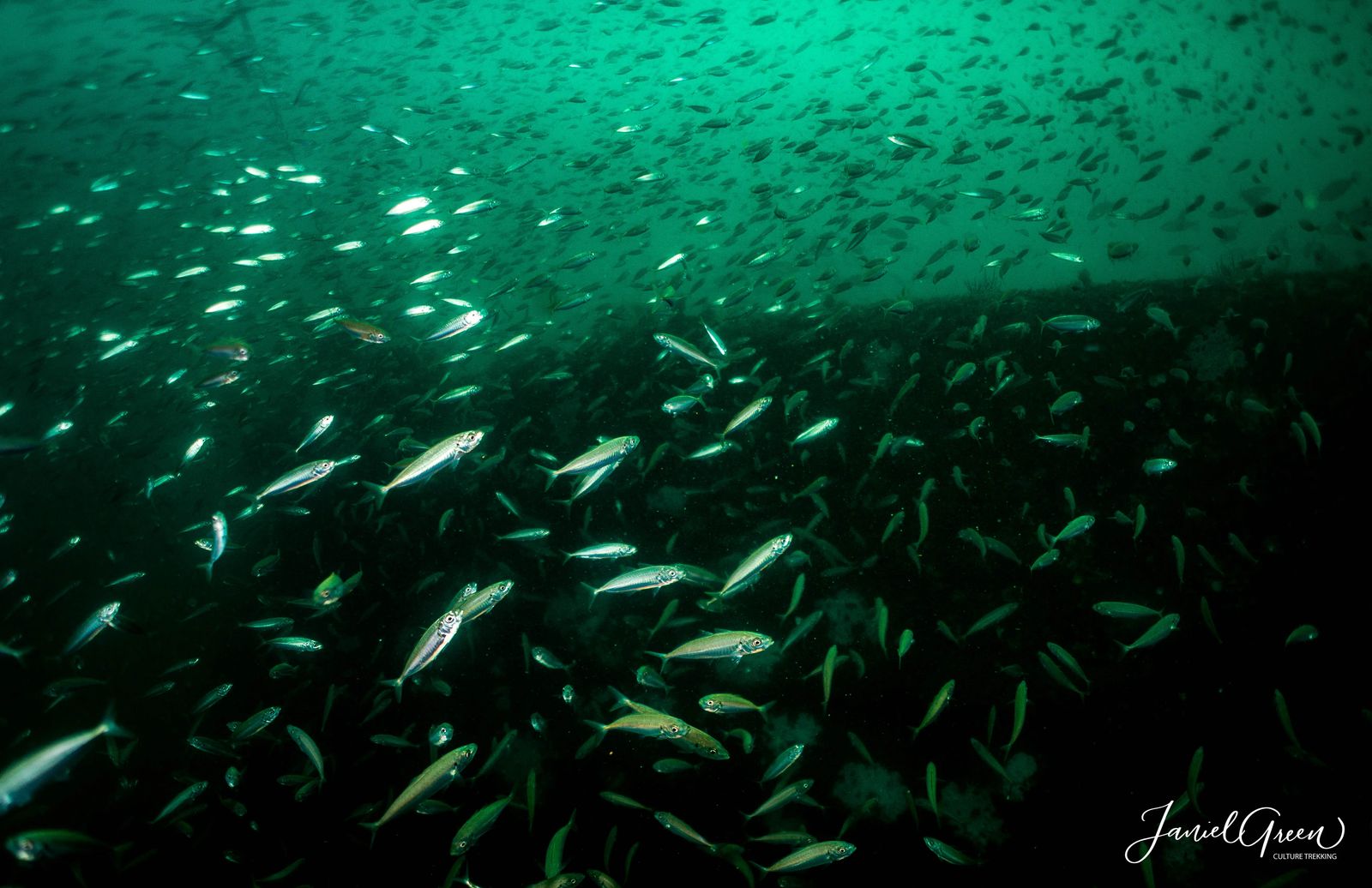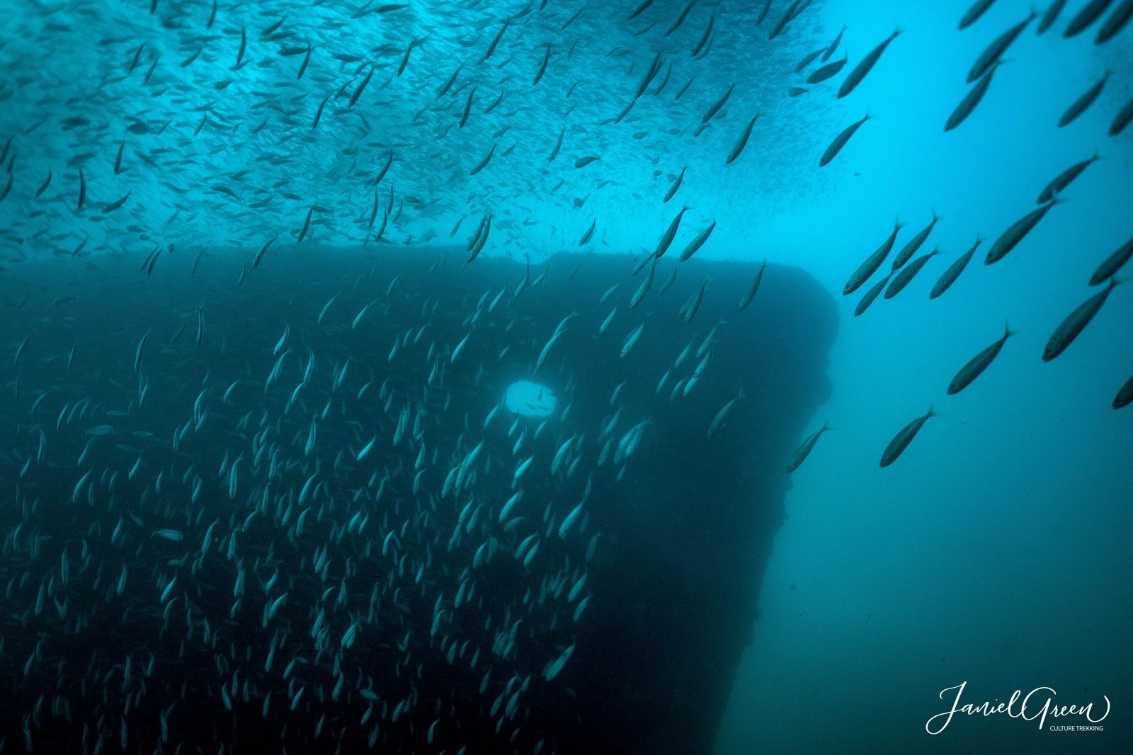 There as some invisible fishing line when we went through the cargo hold, but luckily someone had their knife. So make sure to go slow when your diving in this area, and that you have your dive knife with you. I also would venture to say having at the very least, some full-length skins would be in your best benefit. I had some bottom skins on, and bumped into an edge of the wreck accidentally when trying to turn around, and came up top and it was bleeding.