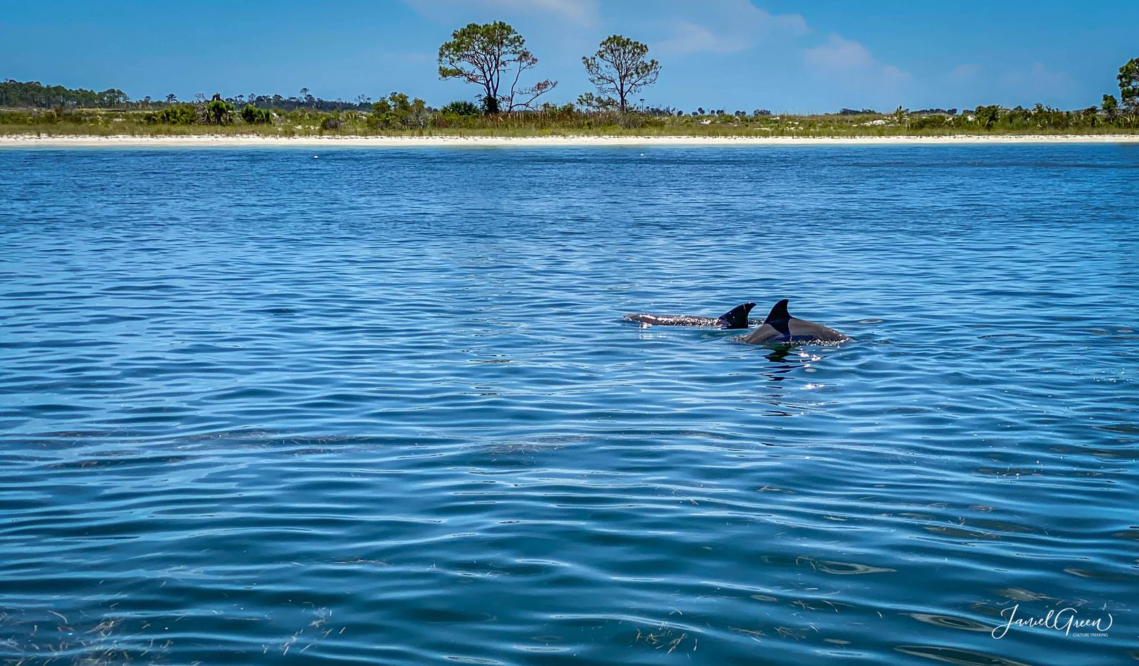 I was sulking a bit and mentally lashing myself with a cat o'nine tails (a type of brutal whip), when our captain changed directions and cut the engine suddenly. He pointed to the front of the boat and we saw a small school of baby dolphins playing near the shoreline! He said he didn't usually stop for these things, but since they were so close, he let us have about 15-20 minutes of just watching one of my favorite baby animals in the wild. It really cheered me up honestly and I was so grateful to him for that.