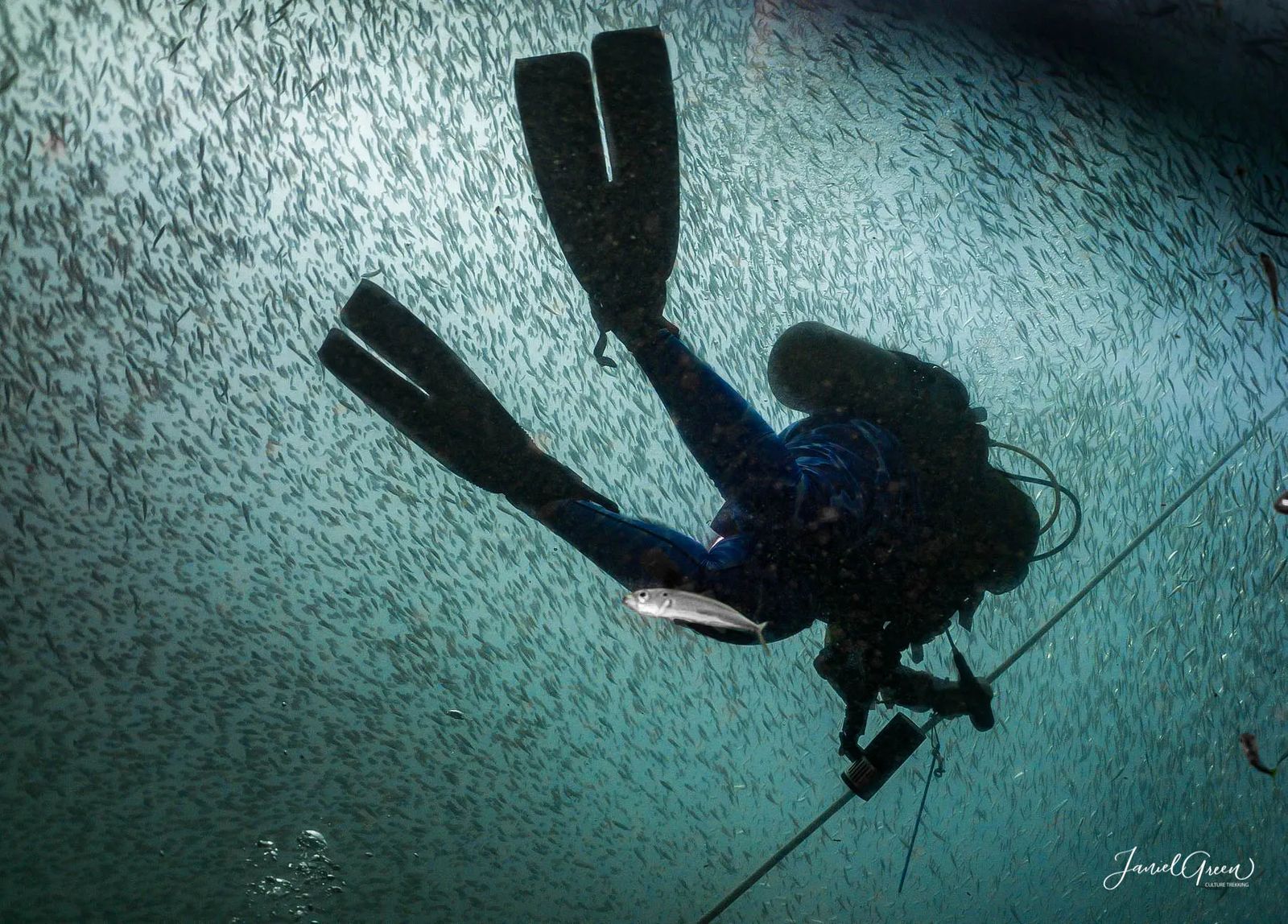 The divemaster takes the first plunge and ties off a line to the boat that you can follow down to the dive. The dive briefing typically involves which direction to take around the boat, any features or structures that could be interesting to see on each particular boat, and things to be aware of like fishing lines, sharp edges, or any unique wildlife hanging out at each boat.